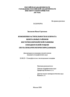 Реконструкция этапов развития растительности по полученным и опубликованным палеокарпологическим данным для центральных районов Восточно-Европейской равнины.