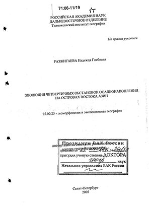 Научная новизна работы. Определены сходство и различия в строении береговой зоны и фациальных взаимоотношениях четвертичных отложений островов в умеренных и низких широтах, которые контролировались направленностью эрози-онно-аккумулятивных процессов во время трансгрессивно-регрессивных циклов и различным геодинамическим режимом. Установлены палеогеографические закономерности осадконакопления на островах с выделением критериев распознавания разнофациальных отложений в зависимости от источников питания. Выявлена специфика органогенного осадконакопления и диагенетических преобразований на островах в разных климатических зонах. Выделены этапы развития обстановок осадконакопления, проанализирована их изменчивость и устойчивость при климатических изменениях плейстоценам олоцена, выявлена реакция на разноамплитуд-ные климатические колебания, установлены палеогеоірафические рубежи их перестроек и факторы, приводящие к необратимым изменениям. Выявлено воздействие катастрофических процессов разной природы и интенсивности на развитие обстановок осадконакопления и показана их специфика в условиях островной суши. Дополнена тефрохронологическая схема для района Южных Курил с выделением ряда маркирующих прослоев вулканических пеплов. На основе анализа роли лито-генной основы при дифференциации разновозрастных ПТК и ее влияния на развитие других природных компонентов оценены время и причины обособления, особенности изменений структуры ПТК разных иерархических уровней, их разнообразие и эволюция. Показано, что особенности эволюции островных ландшафтов в плейстоцене обусловлены периодической активизацией процессов, ведущих к перестройке литогенной основы.