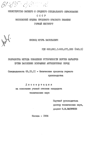 - Анализ условий и эффективности применения способов искусственного повышения устойчивости карьерных откосов, сложенных породами глинистого состава с нежестким сцеплением частиц. Постановка цели и задач исследований