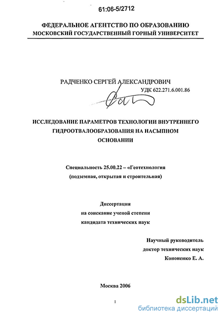 Реализация выводов и рекомендаций работы. Методика расчета параметров технологии внутреннего гидроотвалообразования на насыпном основании передана проектным организациям «Гидромехпроект» и «ДальвостНИИпроектуголь» для проектирования гидромеханизации на разрезе «Ерковецкий»