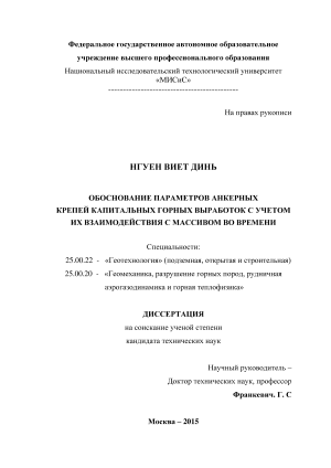 формирования зон равновесного состояния горных пород вокруг выработок во времени, позволяющих обеспечить их эксплуатационную надежность при снижении материальных и трудовых затрат, что является актуальной задачей для угольной промышленности Вьетнама.