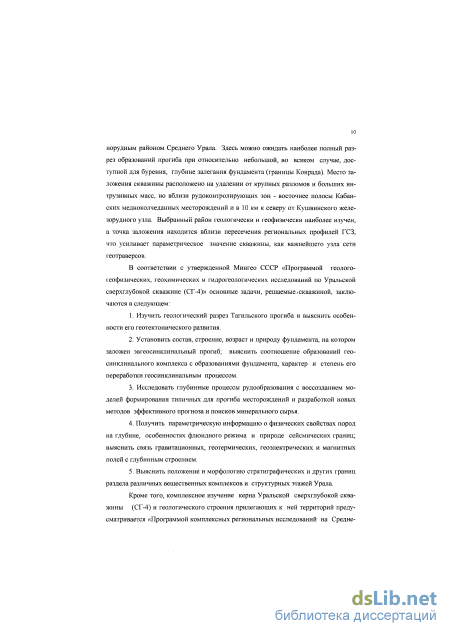 B.C. Дружининым составлены сейсмические и геолого-геофизические разрезы и дан вариант прогнозной модели Тагильского прогиба (1985 г), основными элементами которой являются структурно-вещественные комплексы, физическая характеристика, положение в разрезе сейсмических границ, возможная их природа. Согласно этой модели СГ-4 должна вскрыть полный разрез уралид мощностью примерно 11 км, пройти около 4 км по рифейским образованиям и в интервале 14-14,5 км войти в образования древнего комплекса основания предположительно ар-хейско-протерозойского возраста. При этом в составе уралид выделяются четыре комплекса, среди которых наиболее интересным и неясным будет комплекс пород на глубине 7-9 км. В целом геологическая привязка всех выделенных комплексов и их литологический состав в значительной мере условные. Это попытка спроецировать на разрез по скважине поверхностные образования, развитые к западу от нее.