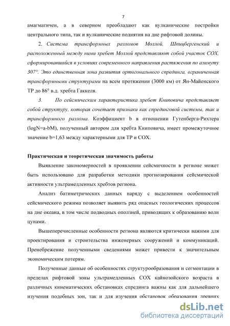 Полученные данные об особенностях структурообразования и сегментации в пределах рифтовой зоны молодых ультрамедленных срединно-океанических в различных кинематических обстановках важны как для дальнейшего изучения подобных зон спрединга, так и для изучения обстановок образования древних пассивных океанических окраин. Развитие сети сейсмологических станций в Арктическом регионе в последние десятилетия позволило получить качественно новые данные о землетрясениях региона, анализ которых проведен в данной работе.