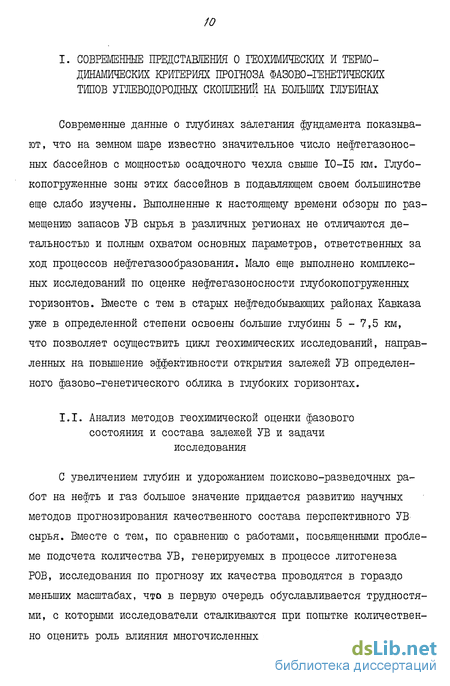 1. СОВРЕМЕННЫЕ ПРЕДСТАВЛЕНИЯ О ГЕОХИМИЧЕСКИХ И ТЕРМО ДИНАМИЧЕСКИХ КРИТЕРИЯХ ПРОГНОЗА ФАЗОВО-ГЕНЕТИЧЕСКИХ ТИПОВ УГЛЕВОДОРОДНЫХЬСКОПЛЕНИЙ НА БОЛЬШИХ ГЛУБИНАХ 10