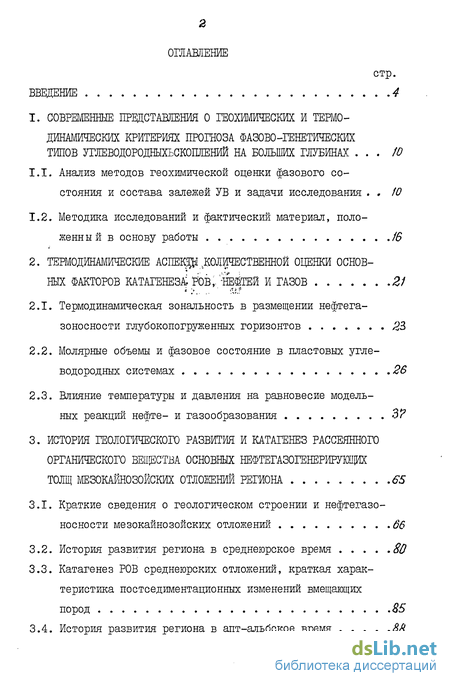 В рассматриваемой главе дается обзор методов оценки объемных свойств углеводородных соединений в интервале различных давлений и температур, обоснование фазового состояния углеводородных растворов. Здесь также приводятся приближенные методы расчета объемных параметров УВ. Затем дается количественная оценка влияния давления и температуры на процесс генерации УВ на основе математического моделирования с использованием уравнений Планка (влияние давления на константу равновесия в растворе) и Вант-Гоффа (влияние температур на константу равновесия). Здесь же произведено сравнение равновесных данных с природными, а также дается обоснование применения линейного соотношения свободных энергий (ЛСЭ) к расчету как ионных, так и неионных модельных геохимических реакций. На основании расчетов дается строгое обоснование температурной зависимости превращения ОБ и УВ, сравнение превращений в газовой фазе и в растворе при высоких давлениях. В последующих главах последовательно, согласно поставленным целям, кратко рассмотрены геологическое строение, нефтегазоносность, история развития нефтегазоносных отложений мезокайнозоя Терско-Каспийского прогиба (ТКП). В качестве отправной координаты геохимического процесса принята степень превращенности рассеянного органического вещества (РОВ) вмещающих отложений. На основе комплексного анализа литоге-нетических изменений вмещающих отложений и химико-кинетических расчетов создана температурно-временная модель превращения РОВ. Последующим моментом было исследование динамики катагенетических изменений в физико-химических свойствах и молекулярной структуре УВ различных тектонических областей региона по данным газожидкостной хроматографии (ІЖХ), ИК - спектроскопии, изотопного анализа, общих физико-химических свойств и группового состава. На основе сопоставления ряда генетических диаграмм оценено влияние исходного ОВ и вторичных преобразований на формирование фазово-генетическо-го облика УВ -флюидов региона. В работе также рассмотрены вопросы информативности и применения различных параметров, характеризующих углеводородную и неуглеводородную части нефтей для целей качественного прогноза состава УВ, а также роль статистических оценок при прогнозных построениях.