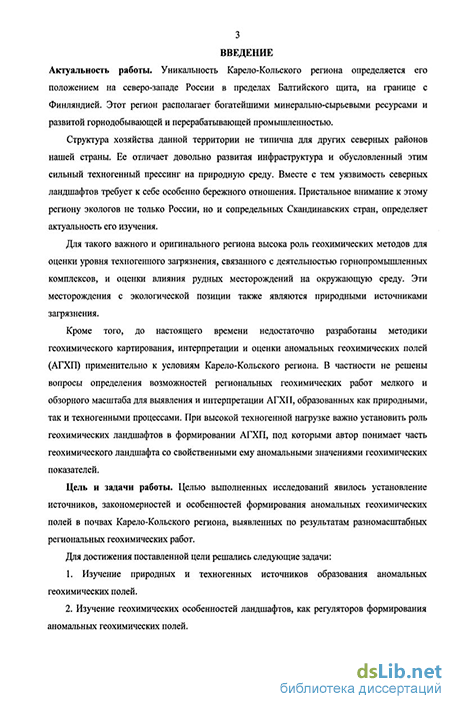 Цель и задачи работы. Целью выполненных исследований явилось установление источников и особенностей формирования аномальных геохимических полей в почвах Карело-Кольского региона, выявленных по результатам разномасштабных региональных геохимических работ