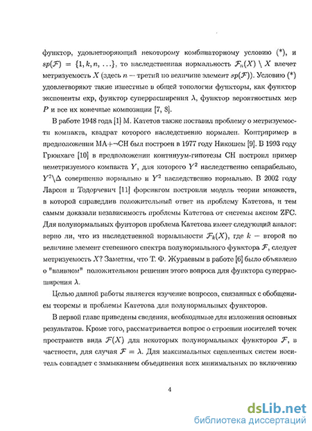 Основные методы исследования. В качестве методов исследования используются различные методы общей топологии, в частности, техника вполне замкнутых отображений и обратных спектров В. В. Федорчука13 и техника исследования полунормальных функторов конечной степени, предложенная В. Н. Басмановым14.
