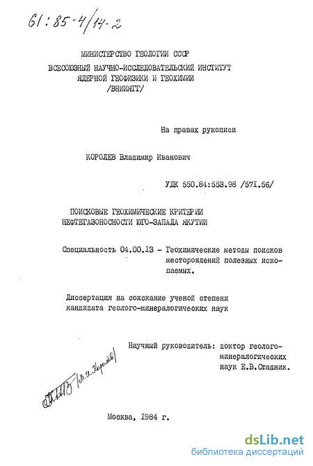 Настоящая дисоертация является результатом исследований, проведенных автором в лаборатории нефтегазопоисковой геохимии (НГПГ) при кафедре геологии нефти и газа Иркутского гос-универоигега им. А,А,Жданова, в пределах территории Ботуобин-ского нефтегазоносного района (HIP) и Якутского выогупа.