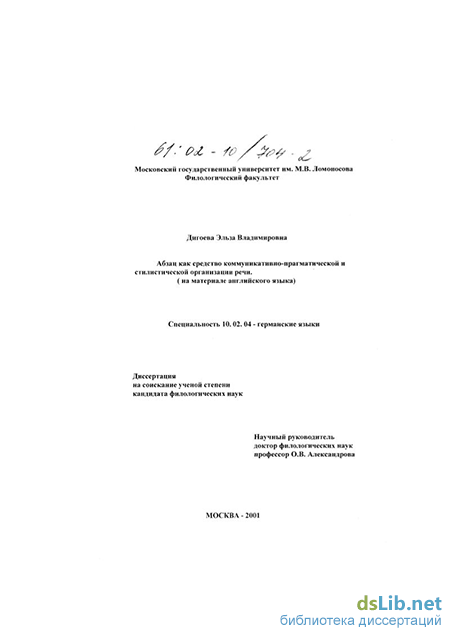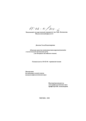 Дигоева Эльза Владимировна. Абзац как средство коммуникативно-прагматической и стилистической организации речи : На материале английского языка : диссертация ... кандидата филологических наук : 10.02.04.- Москва, 2001.- 360 с.: ил. РГБ ОД, 61 02-10/704-2