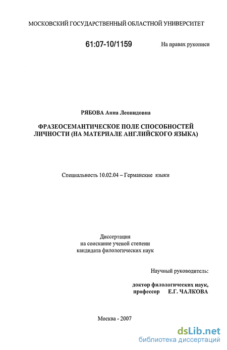 в работе впервые проведён системный лингвистический анализ и классификация ФЕ, входящих в состав англоязычного фразеосемантического поля способностей личности.