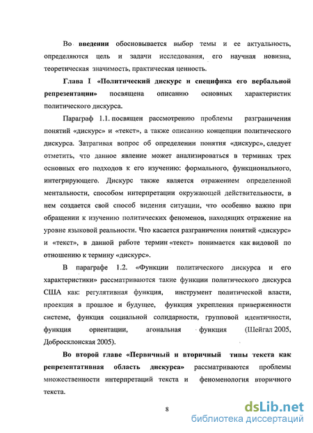 Глава I. Политический дискурс и специфика его вербальной репрезентации