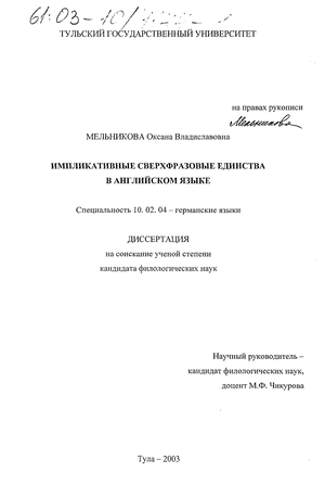 В первой главе представлен теоретический аспект исследуемой проблемы - описывается процедура идентификации ИСФЕ, рассматриваются семантические и формальные особенности импликативных текстоструктур, конструктивная и семантическая значимость конституентов импликации.