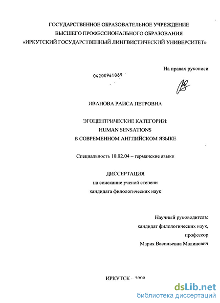 Предметом настоящего диссертационного исследования является лингвистическая репрезентация эгоцентрической категории Human Sensations в современном английском языке