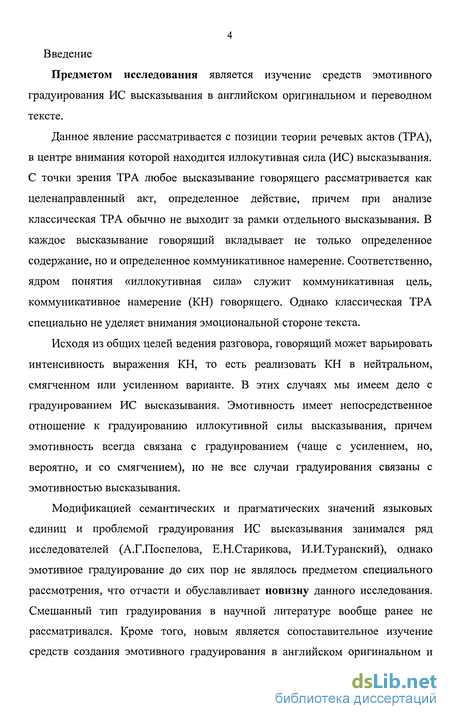 5 переводном текстах с учетом иллокутивных характеристик РА. Эмотивное градуирование изучается на уровне микро- и макро-речевых актов и не ограничивается рамками высказывания.