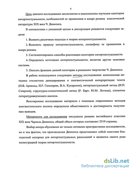 Выбор автора обусловлен не только личными пристрастиями исследователя, но и тем фактом, что произведения Диккенса представляют собой поистине благодатный материал для интертекстуальных разысканий и являются своего рода иллюстрацией теории интертекстуальности.