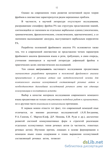 причин, лежащих в основе формирования в немецком языке плана содержания и плана выражения ИСРА, позволит наилучшим образом выявить и описать механизмы вербализации иллокутивного значения РА, поскольку «язык представляет собой по сути экстериоризованное знание; и, следовательно, лингвистика как наука о языке помогает проникнуть в интериоризованные процессы, протекающие в сознании» [Гришаева 1999: 11].