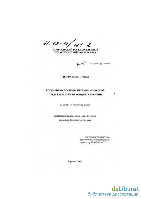 Гилева Елена Петровна. Когнитивные основы неграмматической представленности концепта времени : диссертация ... кандидата филологических наук : 10.02.04.- Барнаул, 2002.- 195 с.: ил. РГБ ОД, 61 02-10/721-2