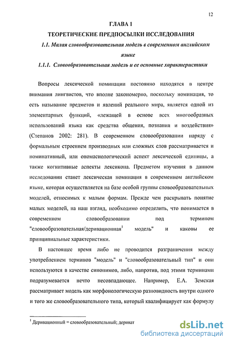 Настоящее диссертационное исследование посвящено изучению лексической номинации в современном английском языке, осуществляемой на базе малых словообразовательных форм/моделей.