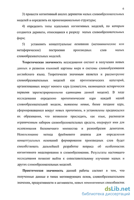 Целью работы является установление номинативно-когнитивных оснований образования дериватов на базе малых словообразовательных моделей. В соответствии с целью ставятся следующие задачи: