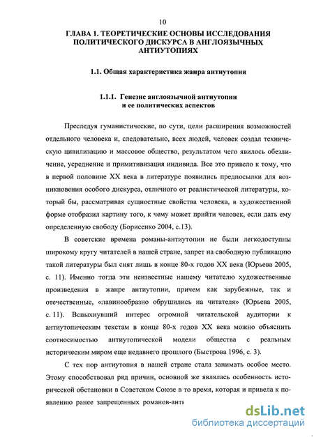1.1.1. Генезис англоязычной антиутопии и ее политических аспектов... 10