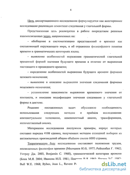 Во второй главе диссертации «Особенности выражения будущего времени в английском языке формами целевого назначения» проводится семантический и контекстный анализ грамматических глагольных форм будущего времени и конструкции be going + инфинитив.