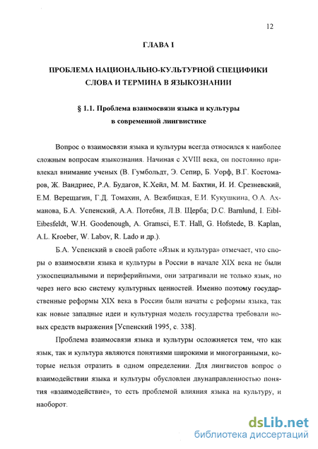 § 1.1. Проблема взаимосвязи языка и культуры в современ ной лингвистике 12