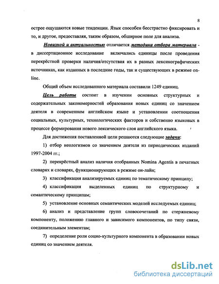 Новизной и актуальностью отличается методика отбора материала -в диссертационное исследование включались единицы после проведения перекрёстной проверки наличия/отсутствия их в разных лексикографических источниках, как изданных в последние годы, так и существующих в режиме online.
