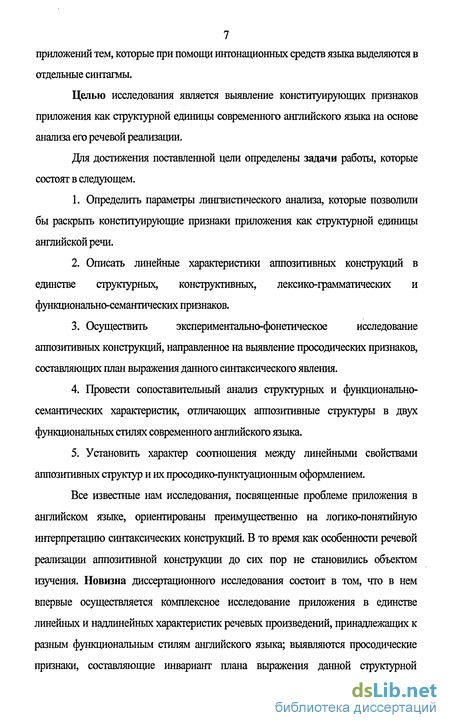 Целью исследования является выявление конституирующих признаков приложения как структурной единицы современного английского языка на основе анализа его речевой реализации.