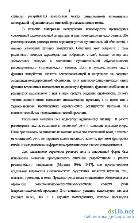 8 единицы; раскрывается взаимосвязь между синтагматикой аппозитивных