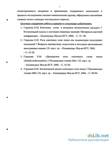 Гордеева Е.М. Ключевые слова в немецком политическом дискурсе // Когнитивный подход к изучению языковых явлений. Материалы научной конференции. - Калиниград: Изд-во КГУ, 2000. - С. 31- 40.