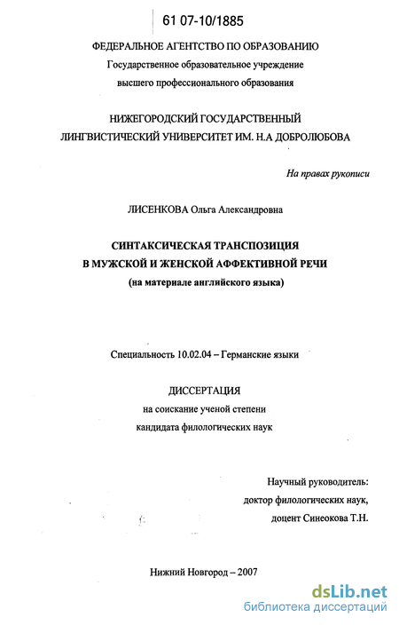 Апробация материалов исследования. Основные теоретические положения и результаты исследования отражены в докладах, представленных на заседаниях кафедры английской филологии НГЛУ им. Н.А. Добролюбова
