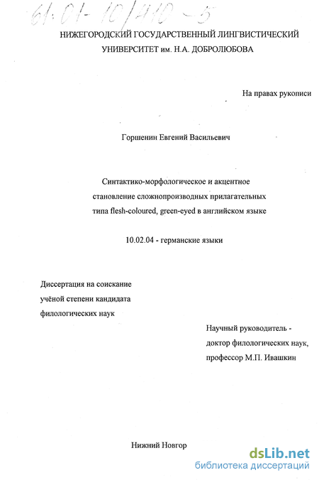 Предлагаемая диссертация имеет целью изучение процесса синтактико-морфологического и акцентного становления сложнопроизводных прилагательных типа flesh-coloured, green-eyed в современном английском языке. Так как наиболее полное раскрытие хода исторических изменений любого языка возможно только путём сравнения нескольких его состояний, естественным образом возникает необходимость комплексного диахронического исследования этого непростого явления, функционирование которого осуществляется в неразрывном взаимодействии всех уровней языка и отношений между ними. А поэтому анализируется не только синтаксический, но и словообразовательный аспект: переход словосочетаний в соответствующие именные производные, степень последующего их акцентного становления и графического оформления.