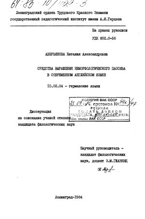 Система залоговых отношений, взаимодействие многочисленных средств выражения залоговых значений (морфологических, синтаксических, лексических) представляет сегодня в свете такого подхода к изучению языковых явлений значительный интерес Настоящая работа посвящена исследованию системы средств выражения неморфологического пассива в современном английском языке Неморфологический пассив определяется здесь как морфологически немаркированное пассивное значение, под которым имеется в виду центростремительная направленность действия (в понимании М.М.Гух-ман) при инактЕвности носителя глагольного признака.