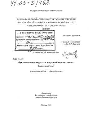 Актуальность исследования. Понятие «функциональная структура популяции» впервые было введено В.Н. Беклемишевым (1960) для обозначения «точки зрения, учитывающей обмен особями в пределах комплексов популяций» (К. Беклемишев, 1969: с. 21). При исследовании морского бентоса под этим термином понимаются закономерности размещения организмов в пространстве и времени, связанные с их размножением, ростом, смертностью, миграциями (Виноградов, 1969; Родин, 1985; Клитин, 2002; Низяев, 2003).