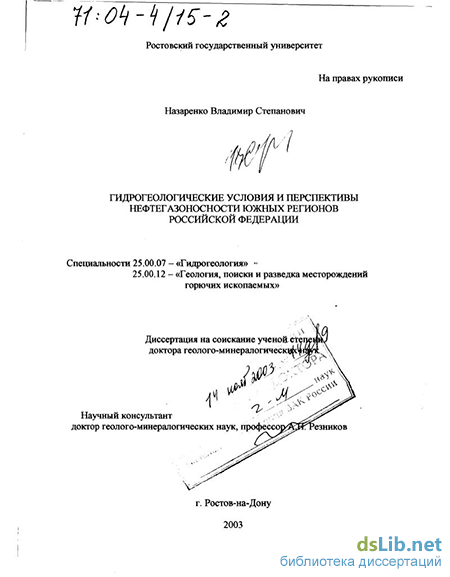 Объекты и предметы исследований. В процессе работы над диссертацией исследовались гидрогеологические условия и их связь с газоносностью, коллекторские свойства палеогеновых и,меловых отложений Ростовского свода, Сальского вала и Целинской седловины, меловых и триасовых отложений Тузлов-Манычского и Маныч-Гуди-