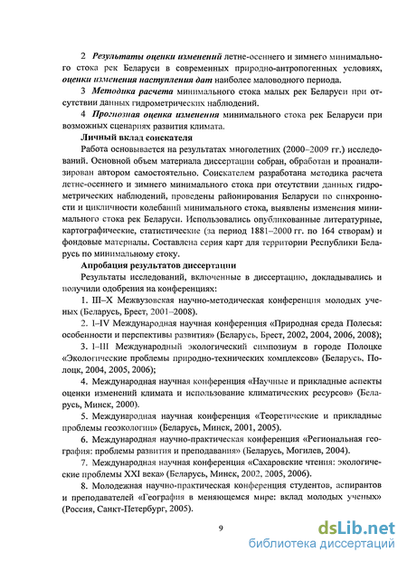 Целью диссертационного исследования является установление закономерностей формирования минимального стока рек Беларуси в современных условиях.