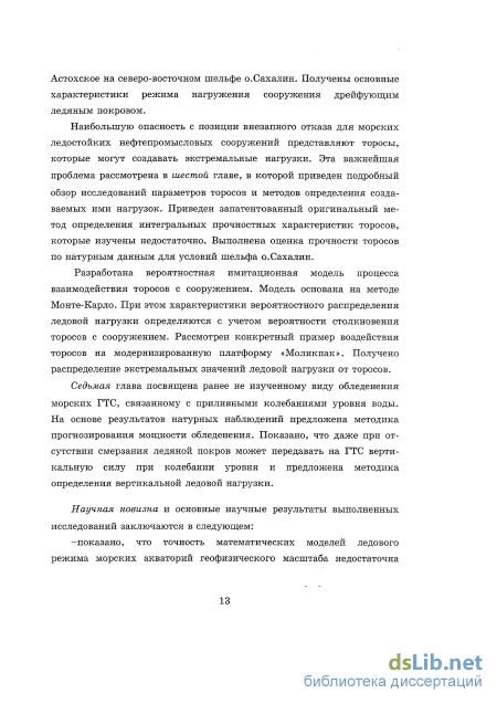 Таким образом, несмотря на прогресс в развитии знаний о ледяном покрове морей и его воздействий на морские ГТС проблема оценки ледовых нагрузок и воздействий с учетом их вероятностной природы, является актуальной научной проблемой, имеющей важное народнохозяйственное значение.