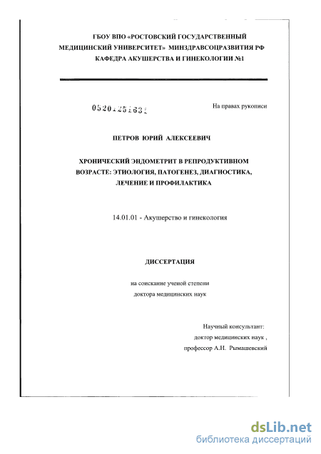 Апробация результатов исследования. Основные положения диссертации доложены на совместном заседании кафедры акушерства и гинекологии №1 и клиники гинекологии Ростовского государственного медицинского университета (2012).