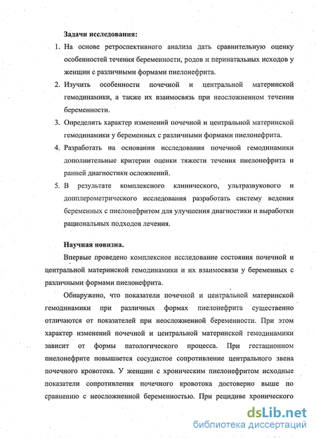 В результате комплексного клинического, ультразвукового и допплерометрического исследования разработать систему ведения беременных с пиелонефритом для улучшения диагностики и выработки рациональных подходов лечения.
