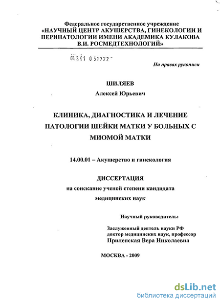 Настоящая диссертация является первой работой, в которой детально изучено состояние шейки матки у больных с миомой матки с применением современных методов обследования.