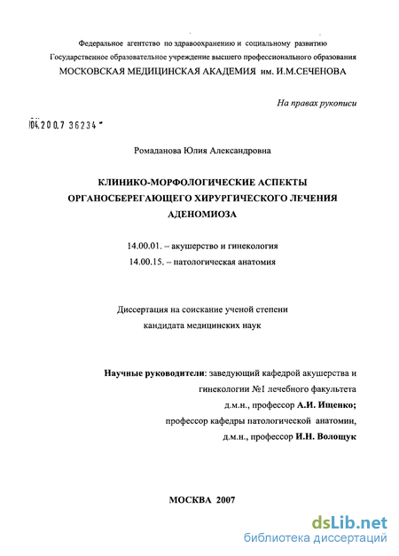 I.II. Этиология, пато- и морфогенез аденомиоза 11