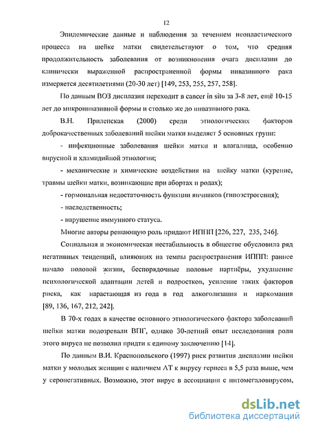 Доказано, что доброкачественные процессы могут предшествовать злокачественным новообразованиям шейки матки, заболеваемость которыми в настоящее время согласно исследованиям В.И. Краснопольского (1997), В.Н. Прилепской (2002) не имеет тенденции к снижению. Так, по данным статистики в России РШМ занимает пятое место в общей структуре онкологической патологии у женщин, составляя 12%, и второе - среди органов репродуктивной системы [94, ПО, 139, 168].