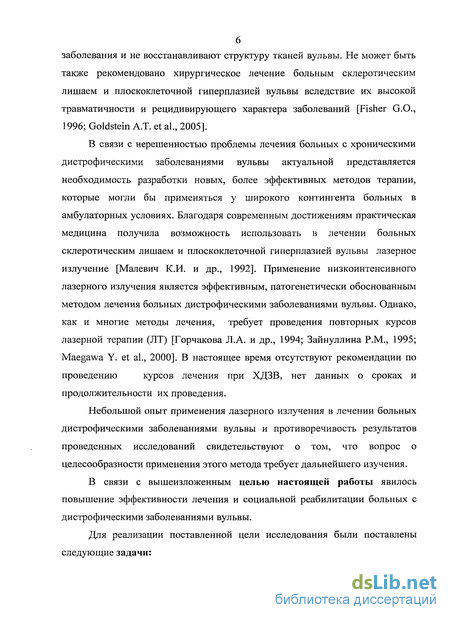 В связи с вышеизложенным целью настоящей работы явилось повышение эффективности лечения и социальной реабилитации больных с дистрофическими заболеваниями вульвы.