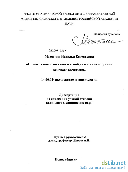 Махотина Наталья Евшеньевна. Новые технологии комплексной диагностики причин женского бесплодия : диссертация ... кандидата медицинских наук : 14.00.01 / Махотина Наталья Евшеньевна; [Место защиты: ГОУВПО "Омская государственная медицинская академия"].- Омск, 2009.- 134 с.: ил.