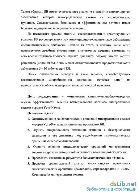 До настоящего времени многими исследователями и практикующими врачами БВ рассматривается как инфекционно-воспалительное заболевание «неспецифической» этиологии. Исходя из этого, в лечении чаще всего используются лечебные мероприятия, аналогичные лечению вагинита, то есть воспалительного процесса. Однако при таком подходе высока частота рецидивов (более 40 %), о чём может свидетельствовать продолжительность заболевания 5 - 10 и более лет в случаях неадекватного лечения. Поэтому лечение БВ должно быть комплексным, не только локально воздействующим на вагинальную микрофлору, но и обеспечивающим коррекцию кишечного биоценоза, иммунной системы, нормализацию гормонального статуса [71]. Исходя из этого, весьма рациональным представляется лечение пациенток с БВ в условиях курорта, где можно оптимально сочетать все необходимые патогенетические воздействия.