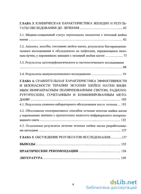 4.2. Обоснование консервативных способов лечения эктопии шейки матки у нерожавших женщин с применением видимого инфракрасного поляризованного света 122