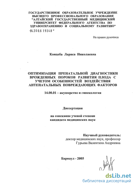 б воздействия антенатальных повреждающих факторов и оптимизации пренатальной диагностики, в связи с чем были определены цель и задачи исследования.