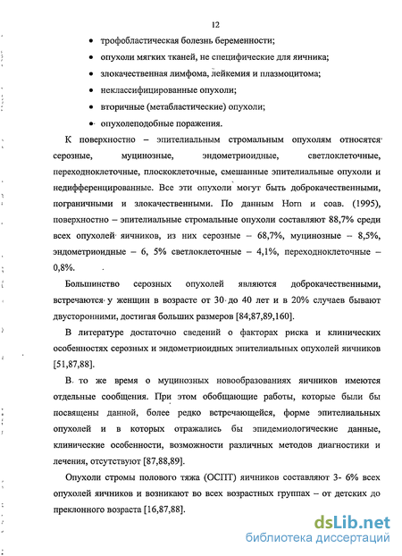 Литература, посвященная новообразованиям яичников, обширна, однако значительная часть ее касается злокачественных опухолей, в то время как большинство новообразований яичников являются доброкачественными. На их долю приходится около 75-87% от всех истинных опухолей яичников [17,87,89,148].