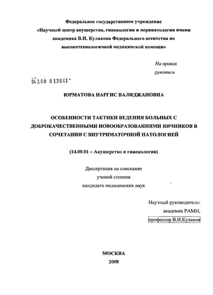 Предложен алгоритм обследования и лечения, больных доброкачественными новообразованиями яичников в сочетании с внутриматочной патологией.