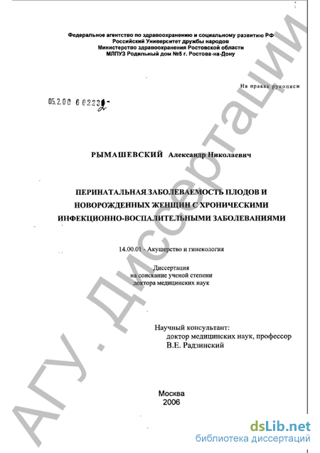 Согласно данным ряда авторов [Радзинский В.Е., 2004; Манухин И.Б., 2005; Серов В.Н., 2005] причины указанного неблагополучия в значительной степени связаны с проблемами перинатального периода.